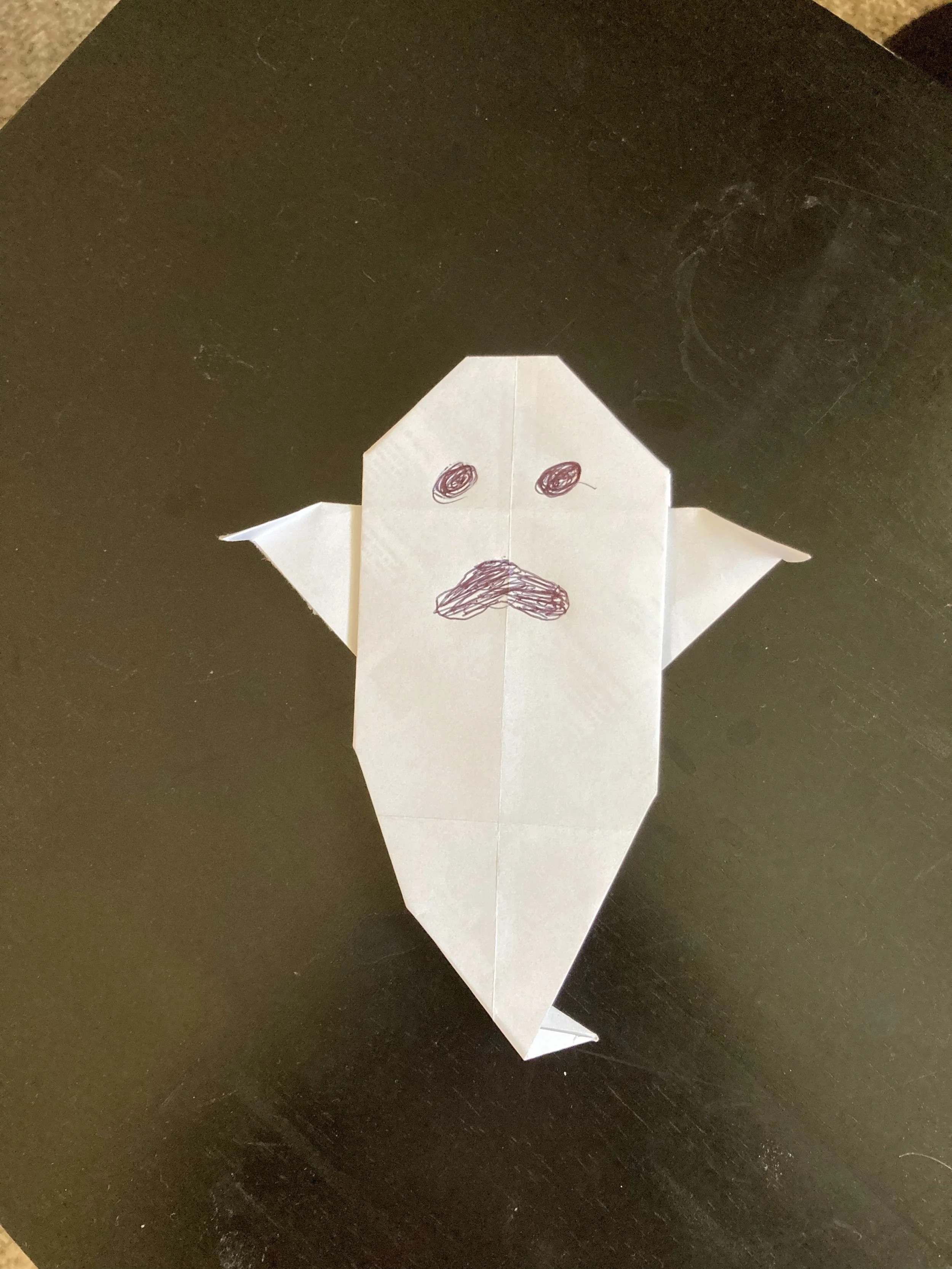 This years spooky origami is for children of all ages. We will learn how to fold “pretty scary” claws! A decoratable ghost or skull, and a skeleton hand.